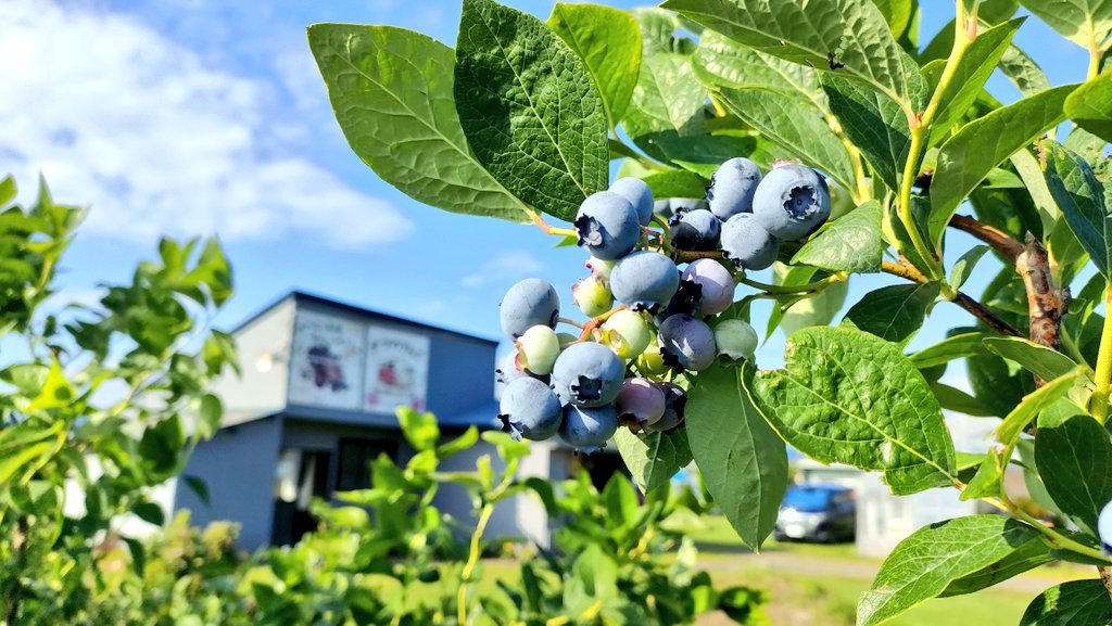 夏にはクラシック音楽とひぐらしの合唱の中、のびのびと育てられたブルーベリーの摘み取り体験も行っています。